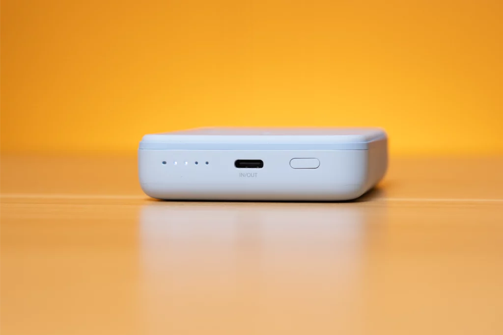 While magnetically connected to your iPhone, the power bank is capable of charging another smartphone using its USB-C port to deliver a max output of PD 20W. You can also reverse that: charging an iPhone wirelessly while recharging the power bank using its versatile input/output USB-C port.