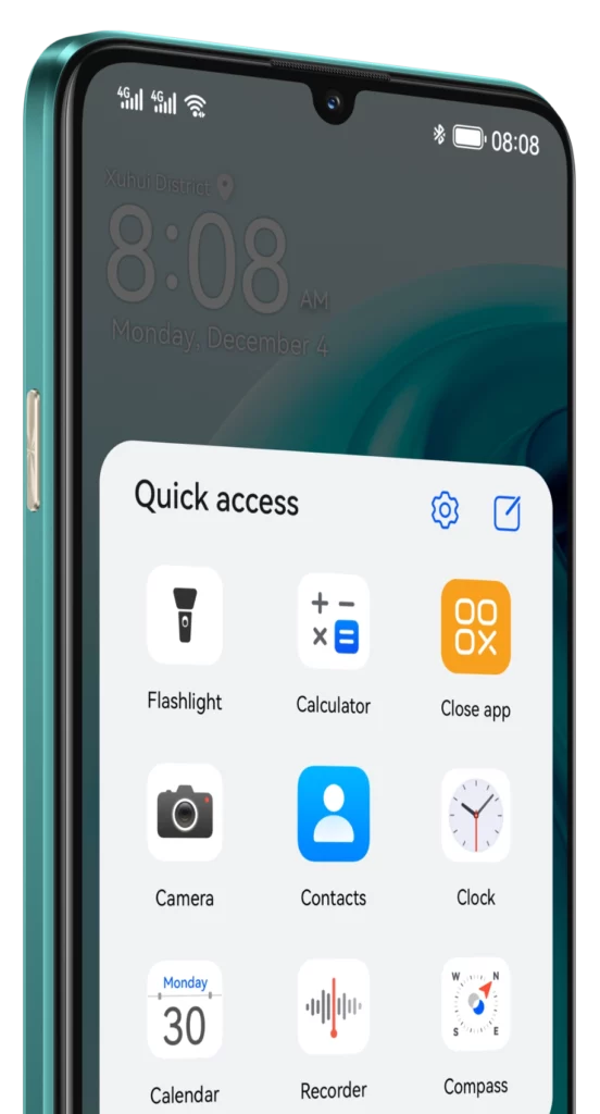 The biggest change on HUAWEI nova Y72 is the new X button located at the upper left portion. When you press it, it shows a screen to display frequently used apps. But you can customize it to your liking and use it to show specific contacts, quick access to payment codes, and even turn on the flashlight, among others.