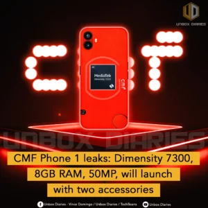 Nothing has already confirmed the CMF Phone 1 will pack a MediaTek Dimensity 7300 chipset paired with 8GB of RAM (expandable with virtual RAM).