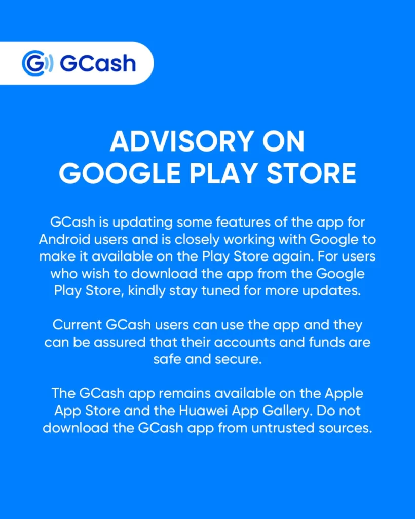 GCash pulled from the Play Store to welcome new updates for Android users. Beware of fake news circulating online.