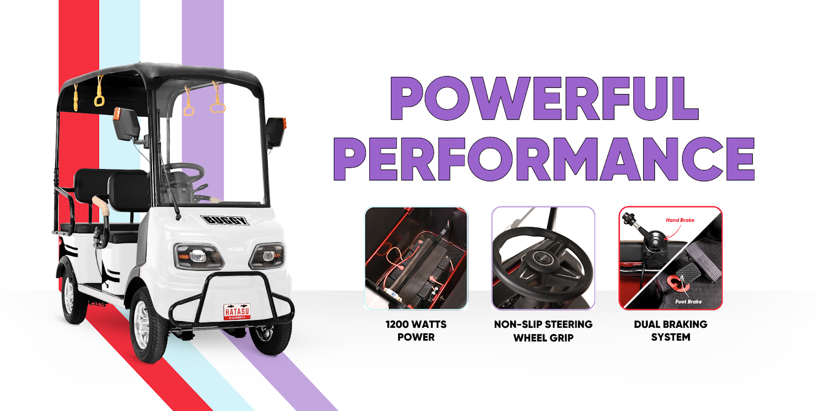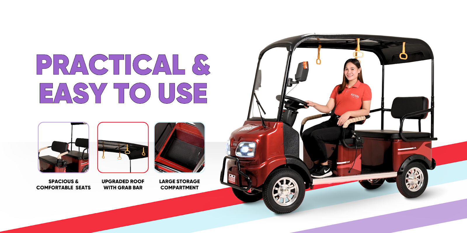 Long, sun-drenched rides are made effortless with the HATASU Buggy’s thoughtful features. The Spacious and Comfortable Passenger Seats accommodates 2-3 persons. The Upgraded Roof made with high-quality polypropylene plastic offers reliable protection ensuring a cool and comfortable ride regardless of the weather. A convenient grab bar adds an extra layer of safety. The Large Storage Compartment made with metal steel with a safety lock can effortlessly hold your things!