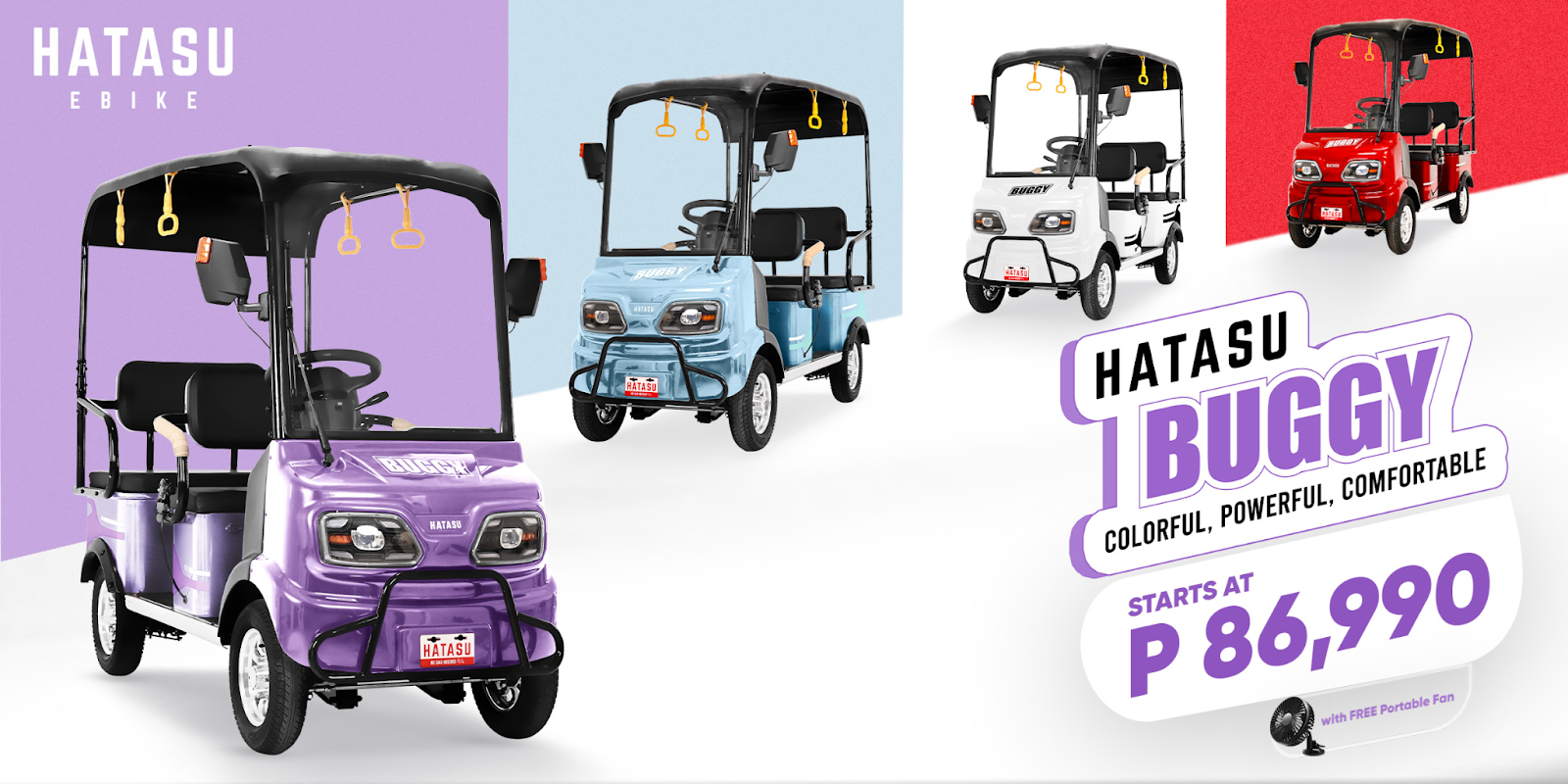 As summer arrives, HATASU launches its first 4-wheeler ebike, the HATASU Buggy priced at SRP ₱86,990! Blending powerful performance with comfortable user-friendly features and a palette of eye-catching colors, the HATASU Buggy is ready to #ColorYourRide this summer!