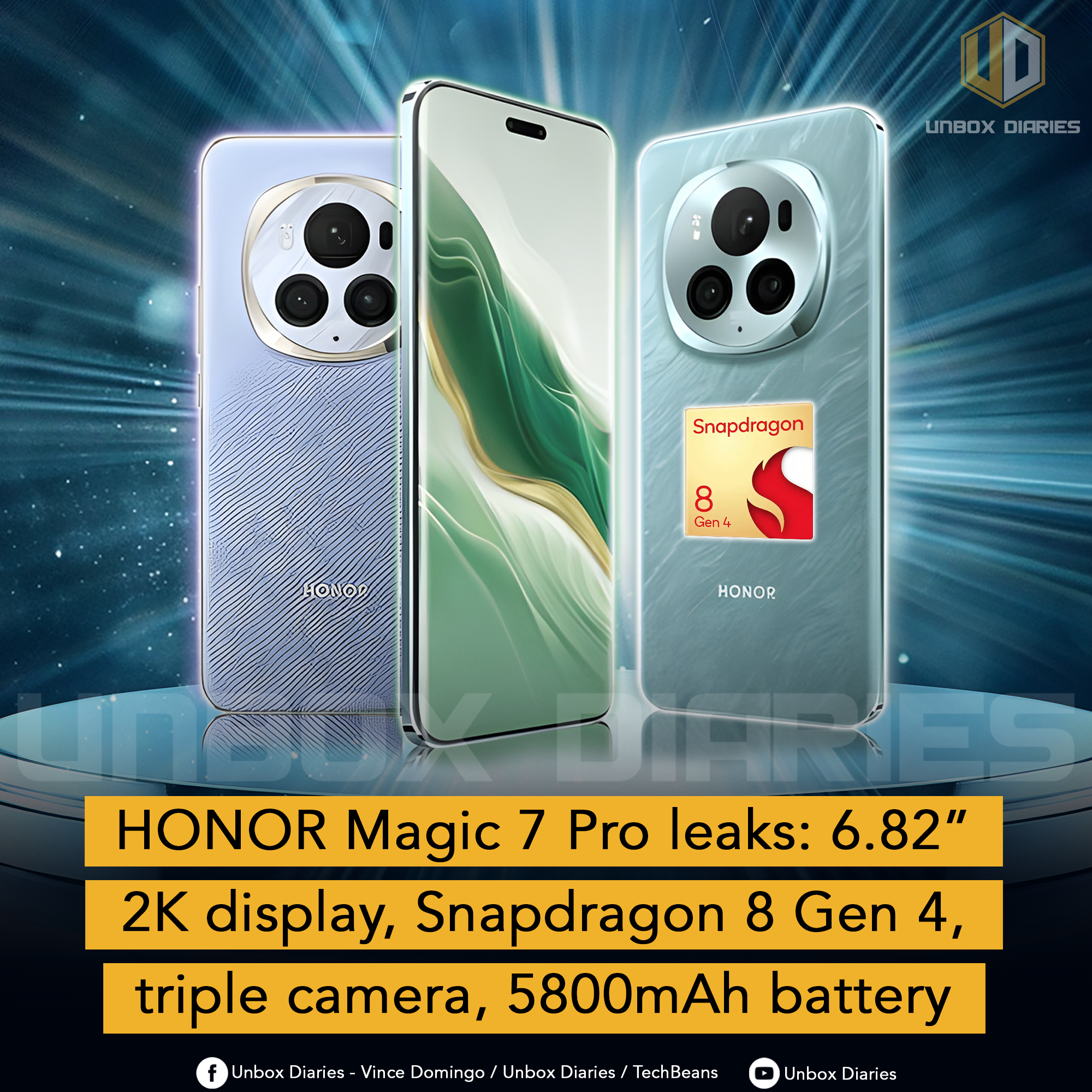 HONOR Magic 7 Pro has some interesting upgrades over its predecessor. The HONOR Magic 7 Pro appears to be around the corner after its key specs leaked online. What we mean by key specs is nearly everything and the only missing thing is an official render. An online Chinese outlet unveiled the specs of the … Continue reading HONOR Magic 7 Pro leaks: 6.82” 2K display, Snapdragon 8 Gen 4, triple camera, 5800mAh battery
