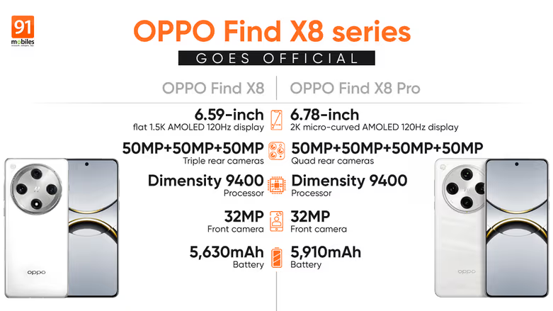 Let’s start with the Find X8s and X8s+, which are the first phones to launch with the Dimensity 9400+ chipset. That already gives them an edge for users who want flagship-tier performance with improved efficiency and AI smarts.