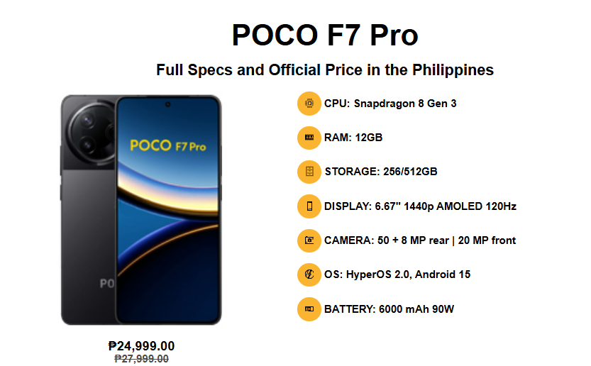 The POCO F7 Pro’s price starts at ₱24,999.00, with promotional discounts and offers available until April 10. This positions it as a midrange device offering several flagship features, providing substantial value for users seeking high performance without the flagship price tag.