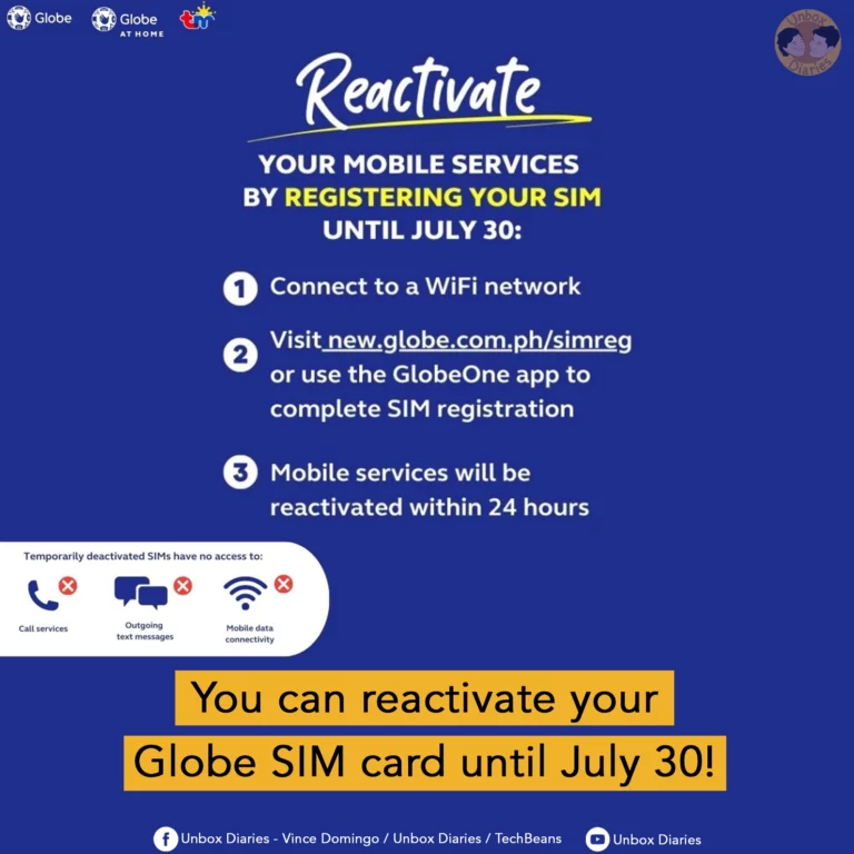 Globe SIM cards have already been deactivated since last Tuesday, the deadline for SIM Registration. Subscribers are being reminded by Globe that they have five days to reactivate their SIM cards. Otherwise, the SIM card will no longer function.